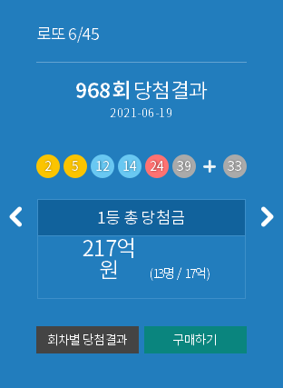 968 회 로또 당첨 번호 - 968í ë¡ë ë¹ì²¨ë²í¸ ë¡ëìë¦¬í¸ : Ai를 활용한 로또 데이터를 분석전문 1:1 맞춤코칭으로 로또 1등 당첨확률 up!